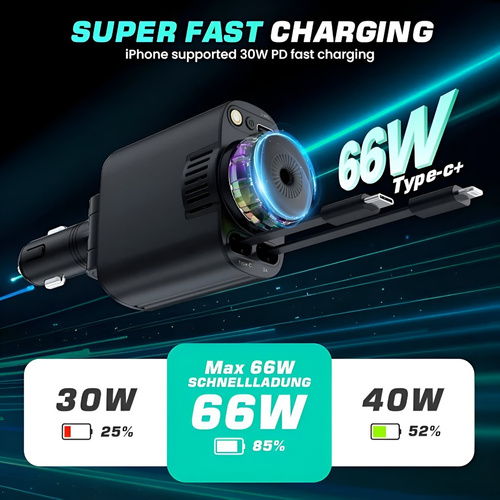 کابلها تا 80 سانتیمتر باز شده و پس از استفاده بهصورت خودکار جمع میشوند تا فضای داخلی خودرو همیشه مرتب و بدون گرهخوردگی باقی بماند.